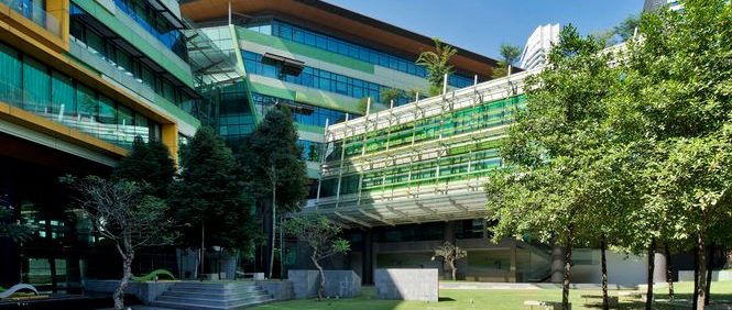 True to its green ethos, the building -- the World Gold Winner of the FIABCI World Prix D’Excellence Awards 2014 for the Sustainable Development Category -- employs architectural solutions to maximize daylight usage, with a naturally ventilated atrium, and solar heating and rainwater harvesting systems. Its office greenscapes include roof and terrace gardens, water features, and the largest green wall system in the country enveloping the whole development.