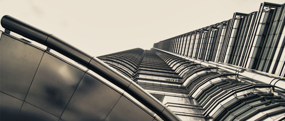 Each building sports 16 large columns around its perimeter, which, along with the rest of the frame, are made of high-strength, steel-reinforced concrete rather than of structural steel, while the exterior sheathing is glass and stainless steel. The award-winning design updates traditional Islamic geometric motifs into a cutting-edge architectural marvel that stands the test of time.