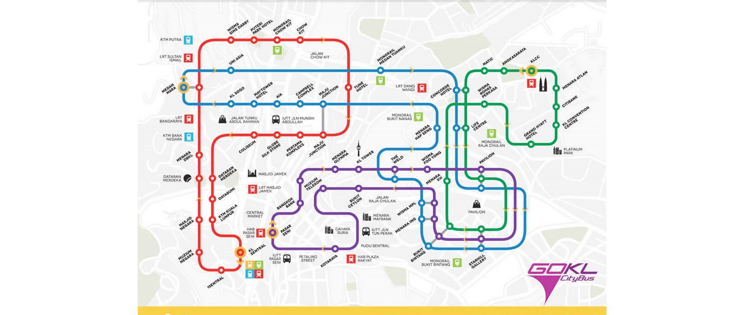 Since its inception in 2012, these buses have proven popular with tourists and locals alike, useful for both sightseeing and daily commutes. This is due not only to the service being free, but also its extensive routes and convenient operating times. The GoKL city bus comes every 5 to 10 minutes, and runs from 6am to 11pm on weekdays, extending to 1am on Fridays, Saturdays and Sundays.