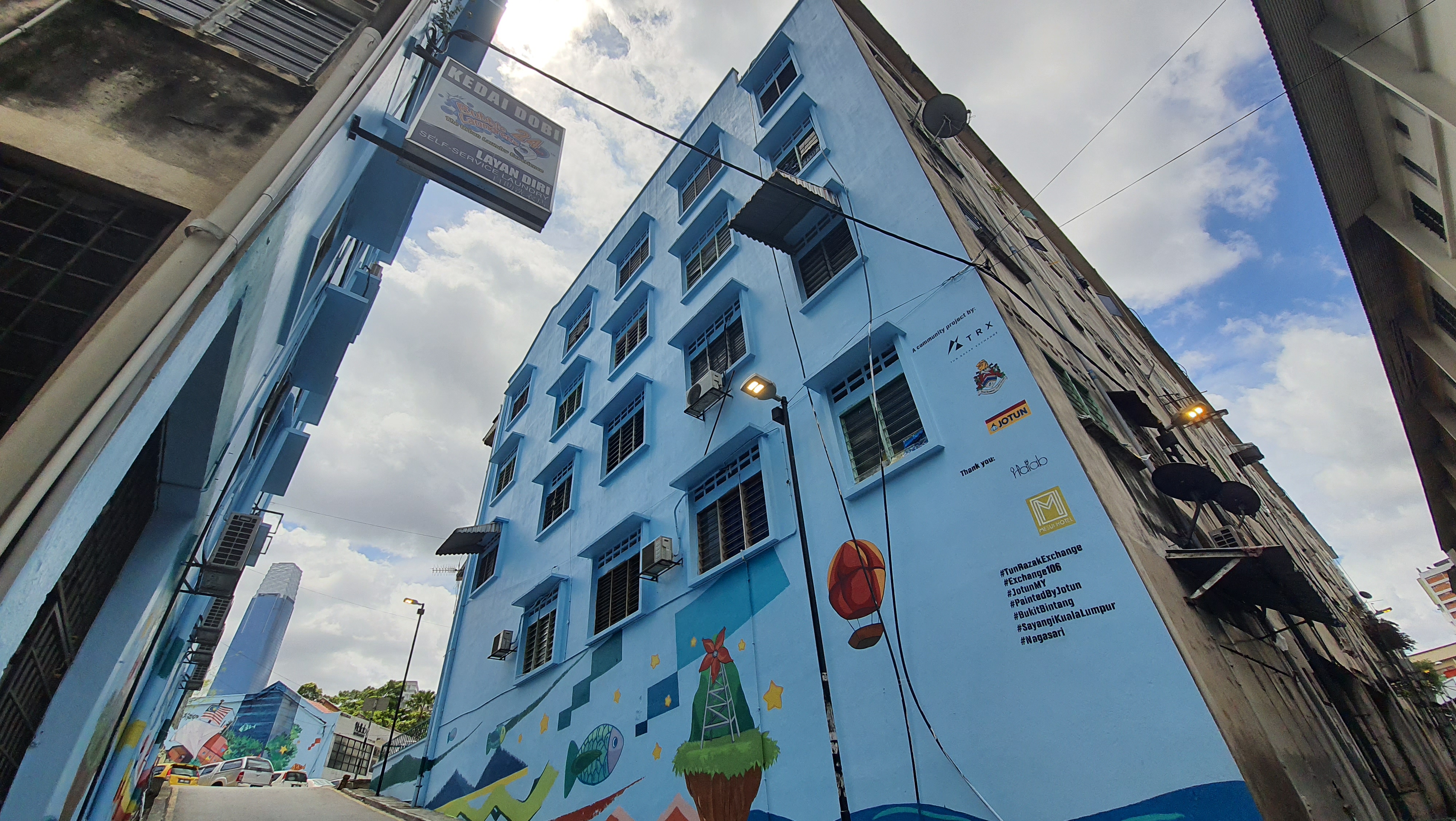 The TRX mural was made possible through a strategic partnership with Kuala Lumpur City Hall (DBKL), which was already in the midst of upgrading the Nagasari neighbourhood to be a more attractive and safe area. Initiatives include landscaping for the Ain Arabia playground, the stunning block colours painted on the old buildings along Jalan Berangan, new lights along the main roads and back lanes as well as other murals in the works.