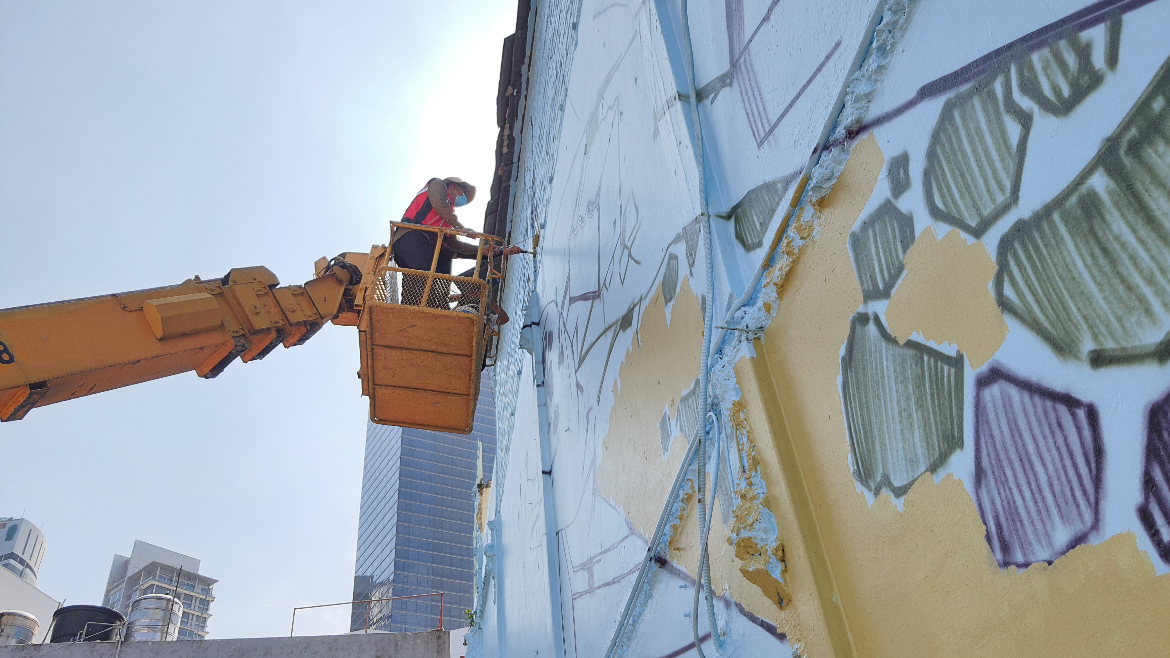 A true community project, local businesses also pitched in to ensure the mural was a success. Halab Restaurant donated their wall for the focal point of the mural, where the real-life Exchange 106 tower seamlessly meets the painted version and offered food discounts for Akid and his assistants. Nearby, The Mesui Hotel provided accommodation to the artistic team for the duration of the project.
