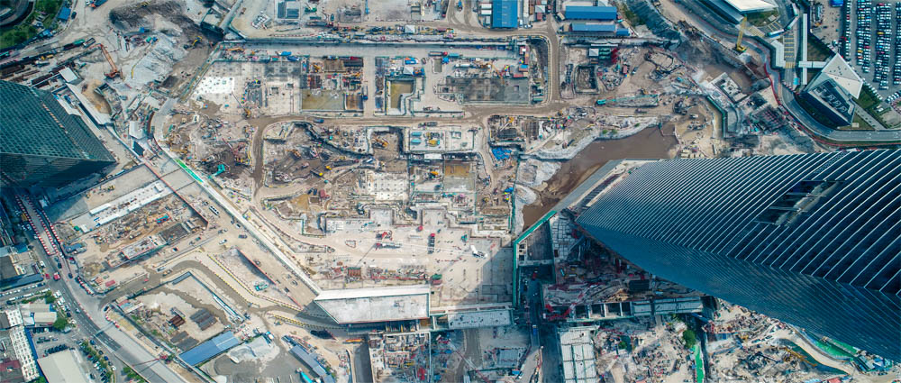 - Superstructure Works are now complete at a couple of the building plots including the Exchange 106 Plot, which was topped out in mid Dec 2017, and now installed its the crown.