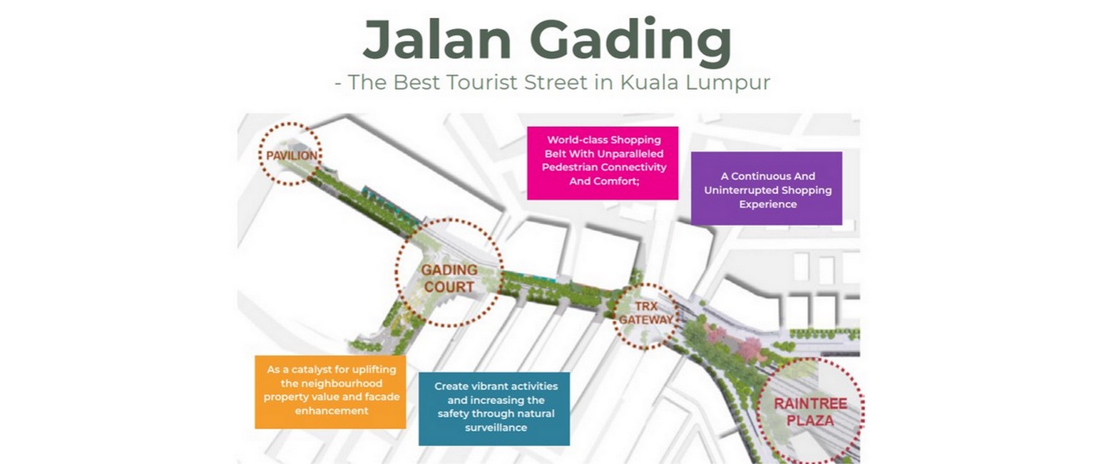 Jalan Gading is one of the arterial roads around TRX and is the main access from Jalan Bukit Bintang to Imbi. Flanked by Fahrenheit mall and Starhill Gallery, Jalan Gading provides the main pathway for pedestrians and shoppers to arrive at TRX.